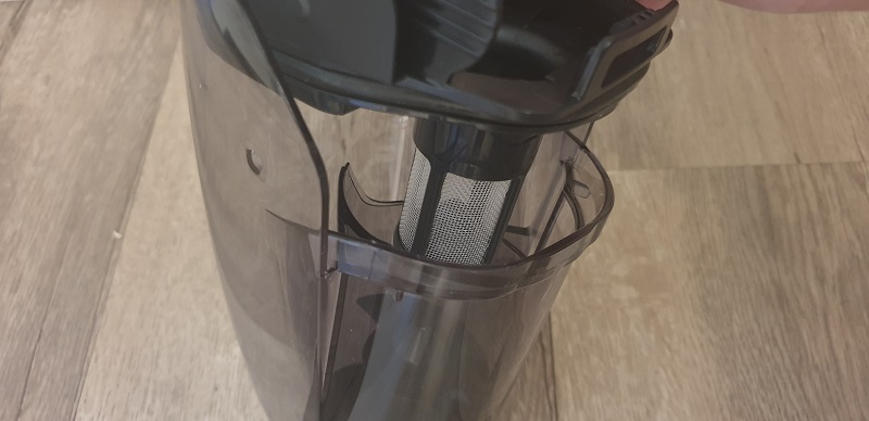 取下集塵筒可以看一下Well Q7的集塵手段,氣流進入集塵筒後就會順勢旋轉,並分離出較大的髒污進入塵筒左方或是被金屬格網攔下