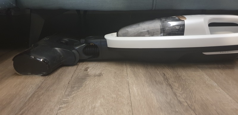 為了克服直立式吸塵器過往難以清潔沙發底部的問題,從Q9開始的機身設計讓機器的”厚度”不會太高,大約13-14cm左右的高度就可以進去了,多數的低矮空間都可以打掃