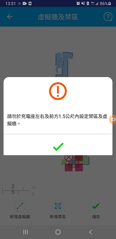 聰明的客倌應該會突然想到,前面小二才說過充電座會被撞,可能會倒,那是不是幫充電座設定為禁區就可以避免了?只能說很遺憾,目前並沒有針對充電座寫例外,如果變成禁區就會完全無法行動,所以直接不給設定,這點希望之後發Patch時可以處理掉