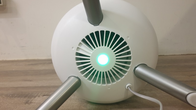 理論適用坪數應約為5.8-7.7坪,話不多說,機器廬山真面目在此!比較圓潤的外型,可以看到跟以往的造型很不相同,底部則有三根支架撐起機器,360度的進風