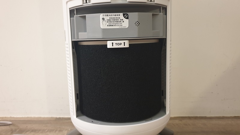 剛才看到的頂端出風口中央,是讓你額外添加香氛精油的,可自行添加滴進去緩釋,但小二自己對於精油是敬謝不敏的,廣義來說,任何額外添加的東西都屬於空氣汙染,是空氣清淨機會處理的對象,以精油來說,可以視為TVOC,是活性碳會處理的對象