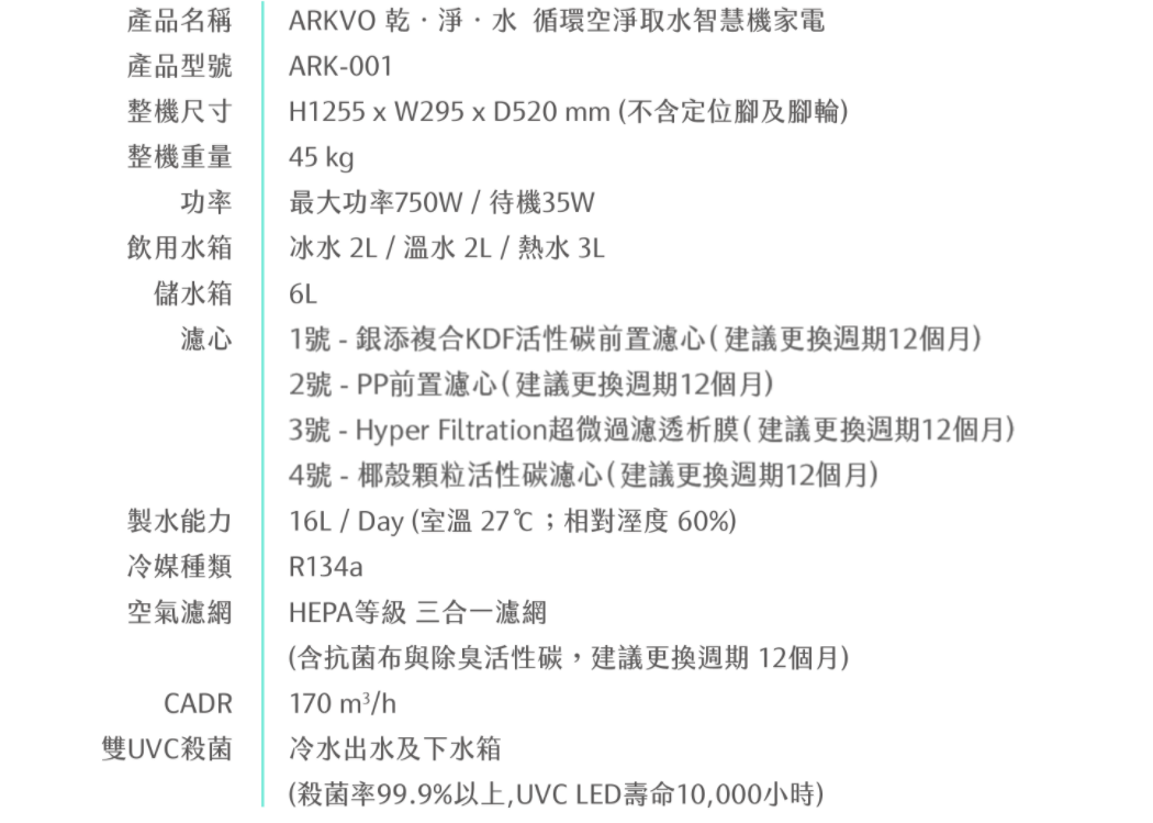 不確定是不是小二錯覺,雖然之前就看過,但最近FB又非常常看到國產Arkvo,標榜設計教父產品,主打清淨、除濕、飲水三合一的廣告,剛好社團也有人在討論,所以就簡單寫篇短文聊聊個人對於這台(類)產品的想法