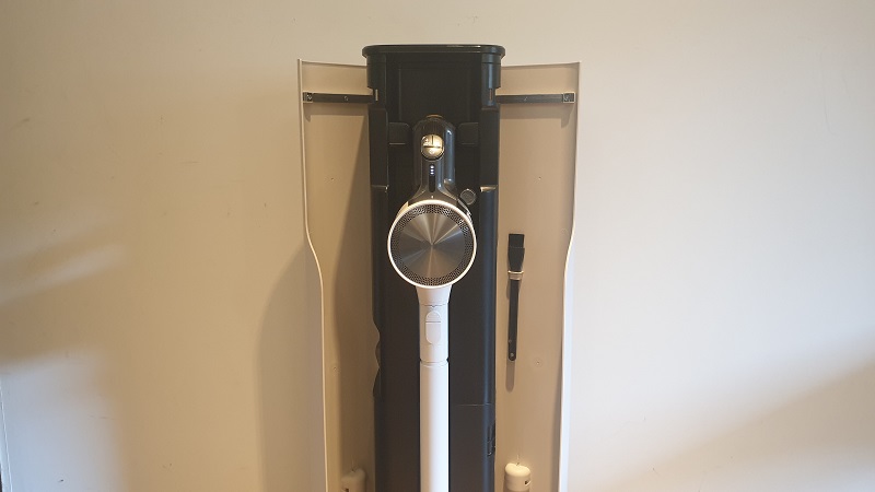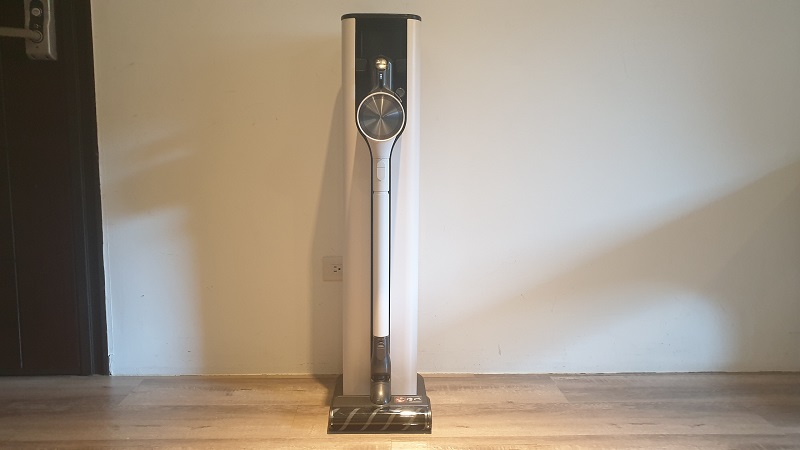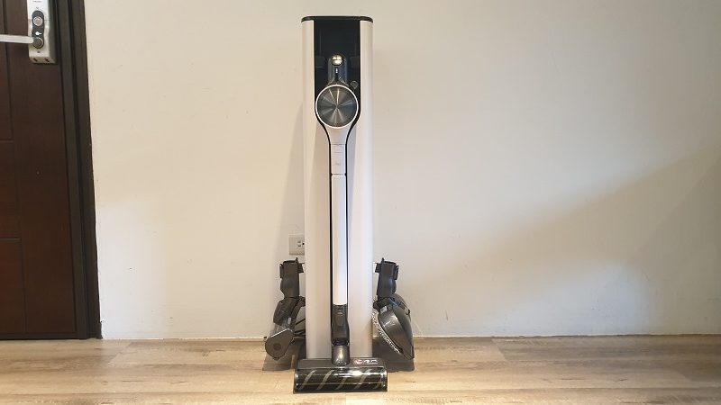 最後是這次A9T系列最主要的賣點,也就是兼具收納架功能的All-in-one Tower集塵座,因過往機種的收納本來就會佔去一定的地面空間,所以在佔地面積增加一點點的前提下,額外提供自動集塵+把吸頭收納到看不到,感覺其實還不錯