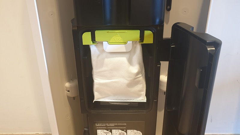 頂部部分則是控制面板,可以手動集塵(掛上後點擊開始),或是設定成自動集塵(掛上後自動開始)