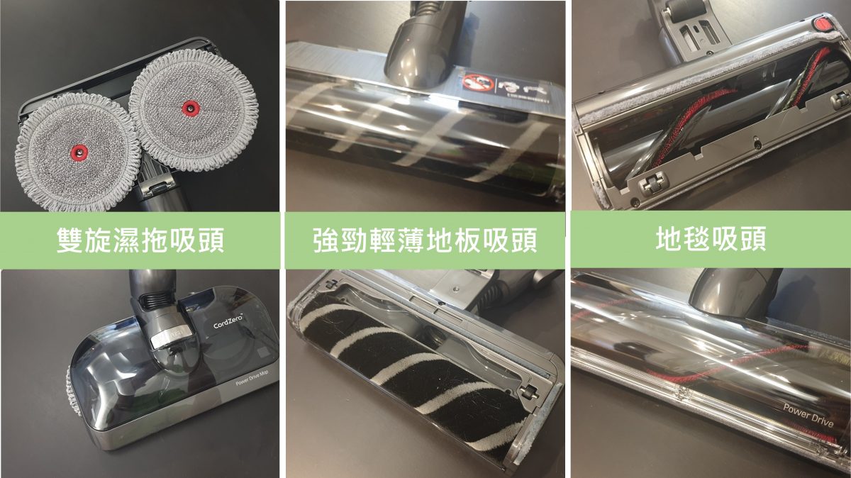 - 吸頭:強勁輕薄地板吸頭、濕拖吸頭、地毯吸頭、毛髮專用吸頭、縫隙吸頭、二合一毛刷