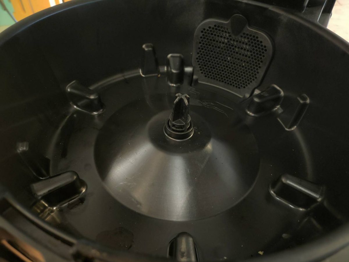 我查了一下,酥炸籃下有個小環,是給內鍋型號ah95用時才要裝上去的,這台好像不是,我拆下來後旋轉就正常了,您試試看